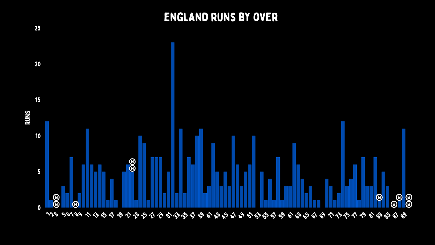 And he was batting with Harry Brook, who currently has the fifth-best batting average in the history of the game. At this point, you’d be forgiven for thinking this team is awesome with the bat. But remember, their entire total in this match was these two guys. The rest of the time, England have been absolute rubbish. They’re flipping a coin and hoping for the best.