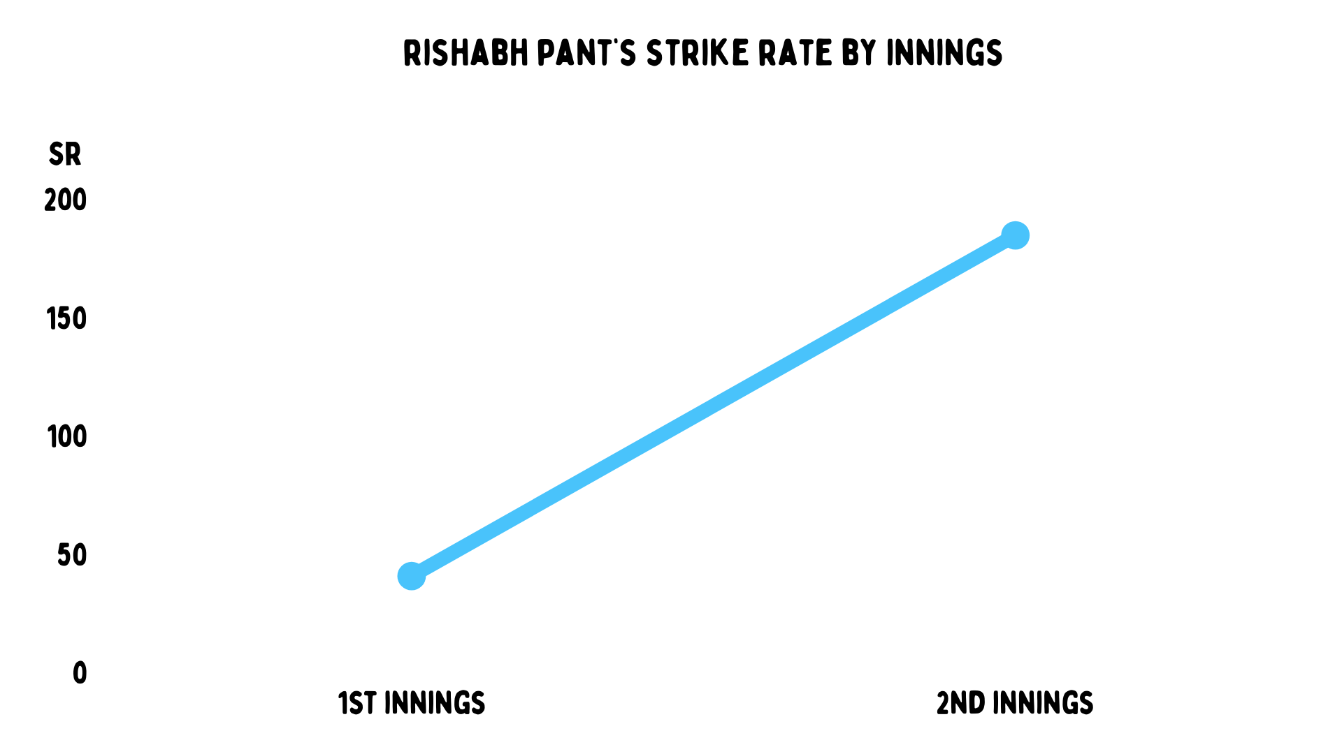 In the second, though, Rishabh Pant was hitting. He would charge down the wicket and smash the ball back over the head. He would slash to the off side, ramp the ball over the top, and just slog sweep fast bowlers for fun.
