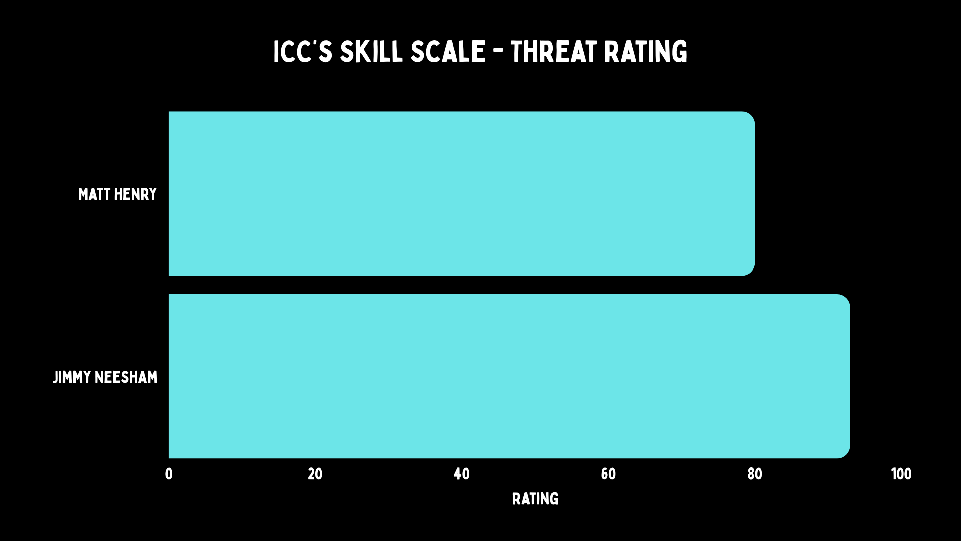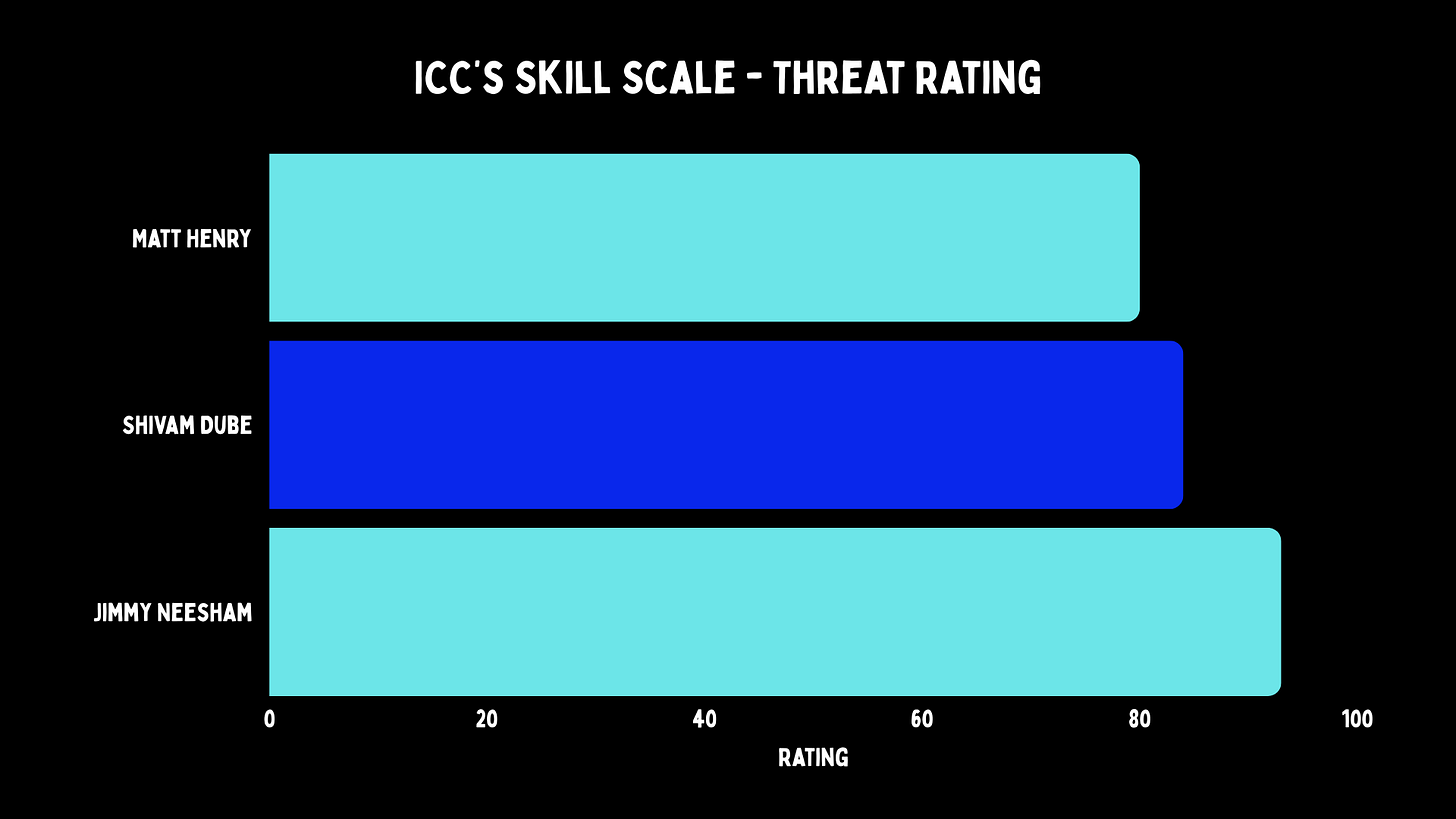 According to this ICC-sanctioned metric, Neesham is a 93 on the threat level, an unlikely strike bowler, and Matt Henry is the part-timer who occasionally rolls his arm over.