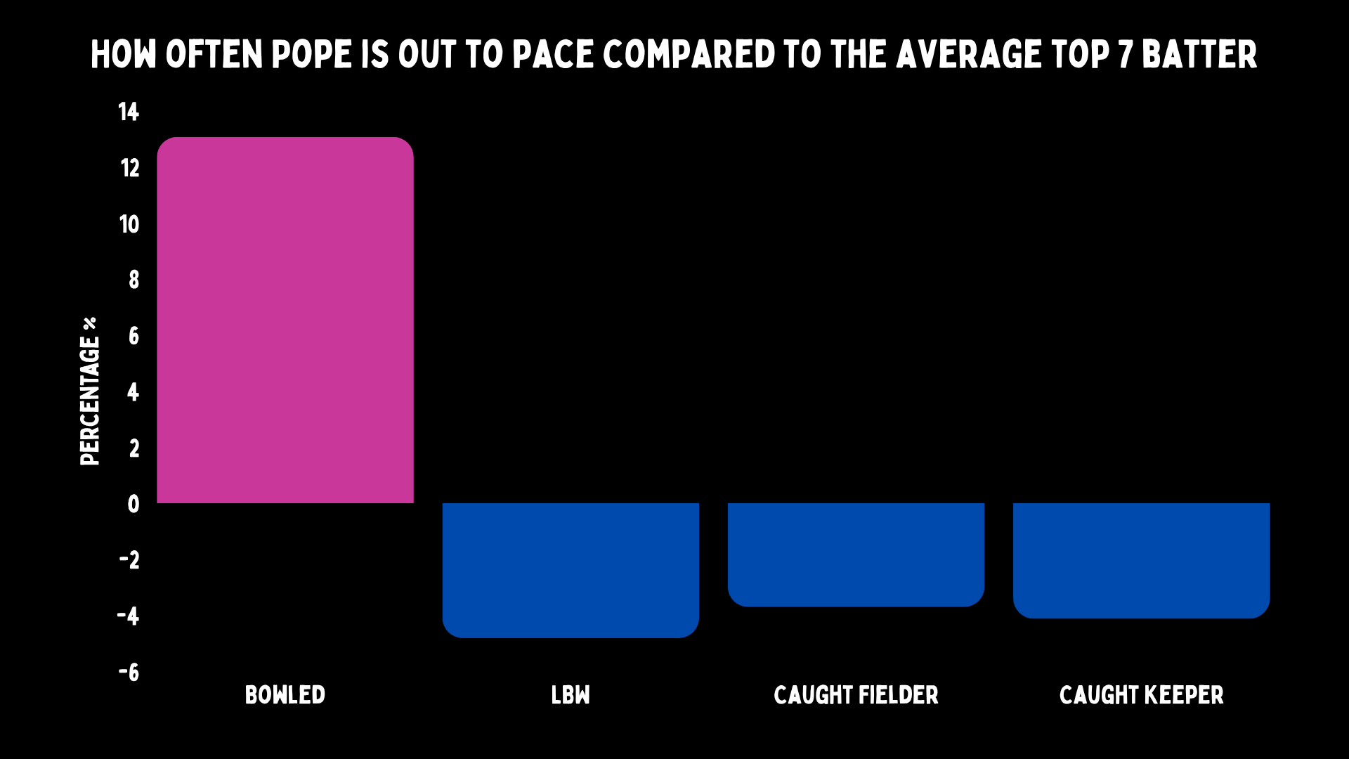 On an extremely related note: Ollie Pope gets bowled a lot by pace. His stumps being splattered is a meme and a T-shirt.