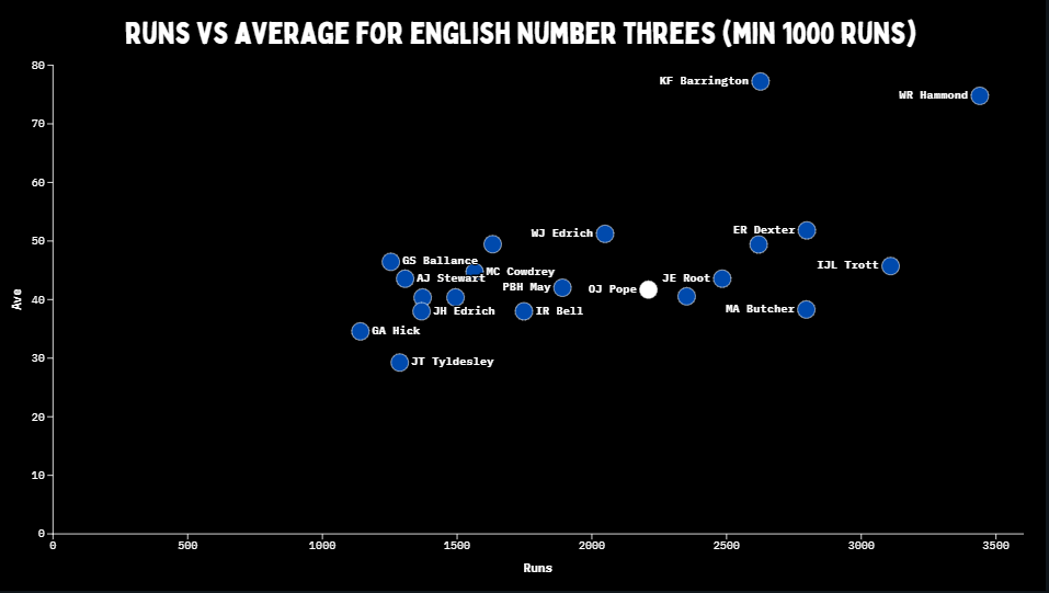 You can argue the average or effectiveness. But Pope has made the most runs at number three in Tests in the last few years, and it’s been so tough that Marnus Labuschagne - the player with the third-most runs - has been dropped.