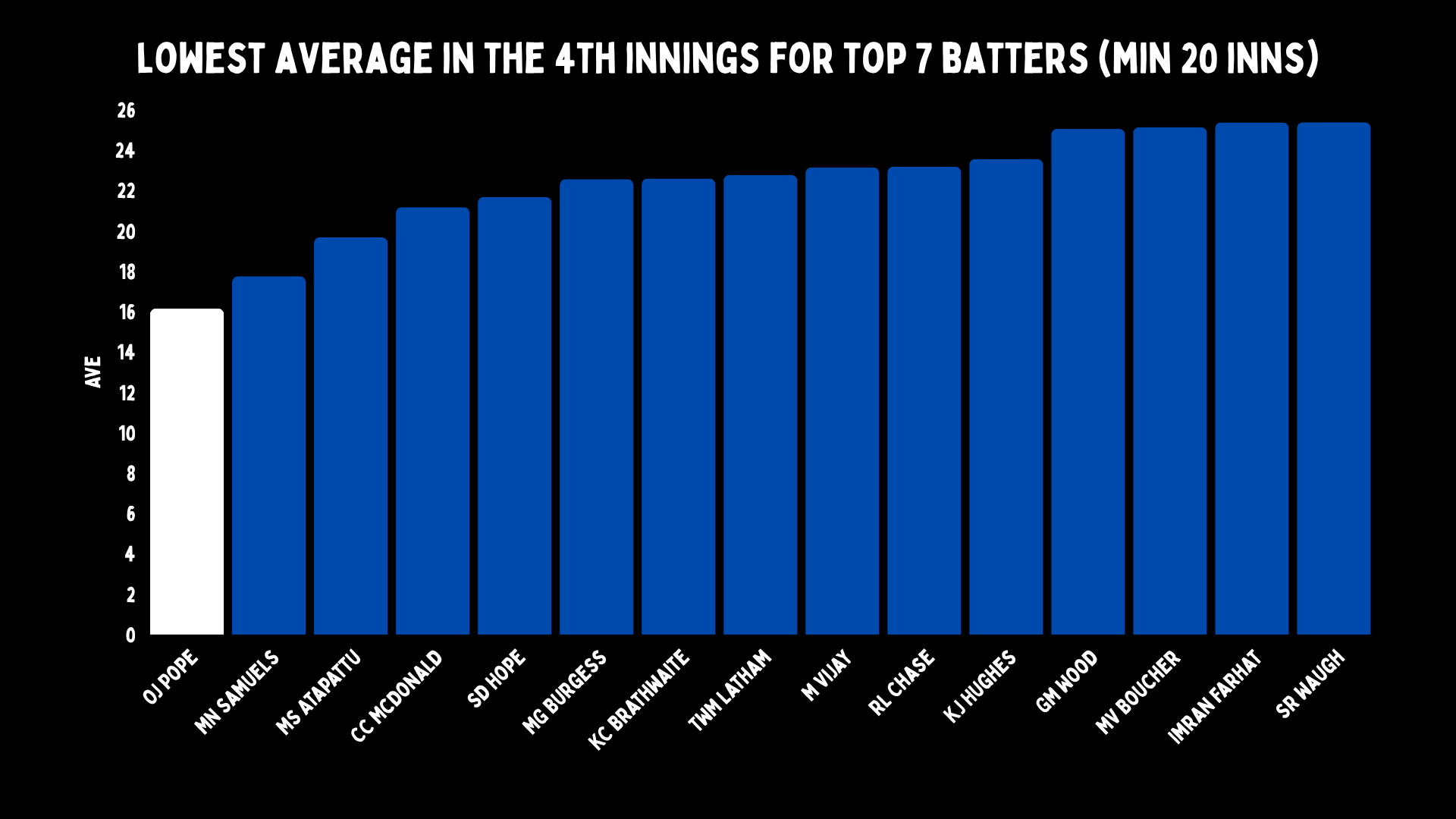 It is also not just the fourth innings, is it? If you look at Pope, he has one of the worst records in the third as well. If Test cricket was a one innings game, he’d be one of the world’s best players.