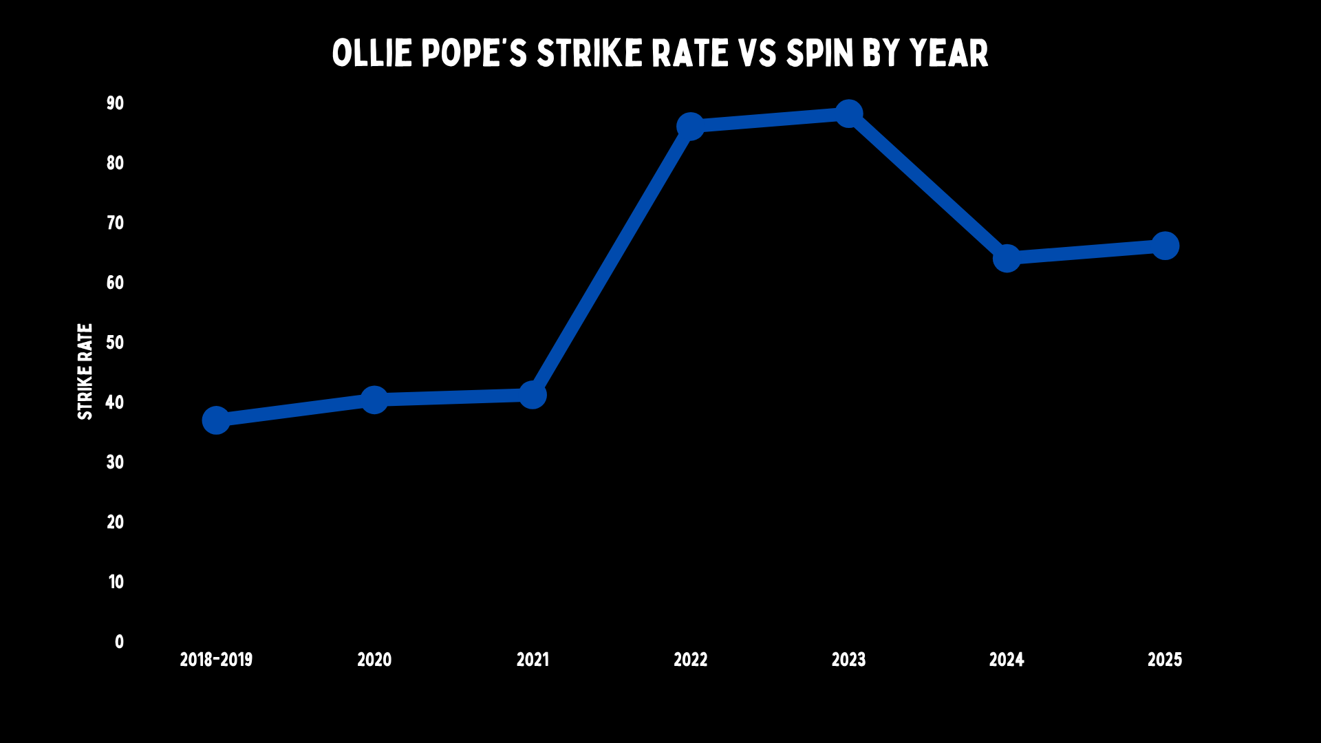 So Butch knows batting and Pope, and here I was telling him two things: that the young Surrey gun basically couldn’t score when the ball was on a length outside off stump, which is never a good sign, and that his strike rotation against spin was terrible.