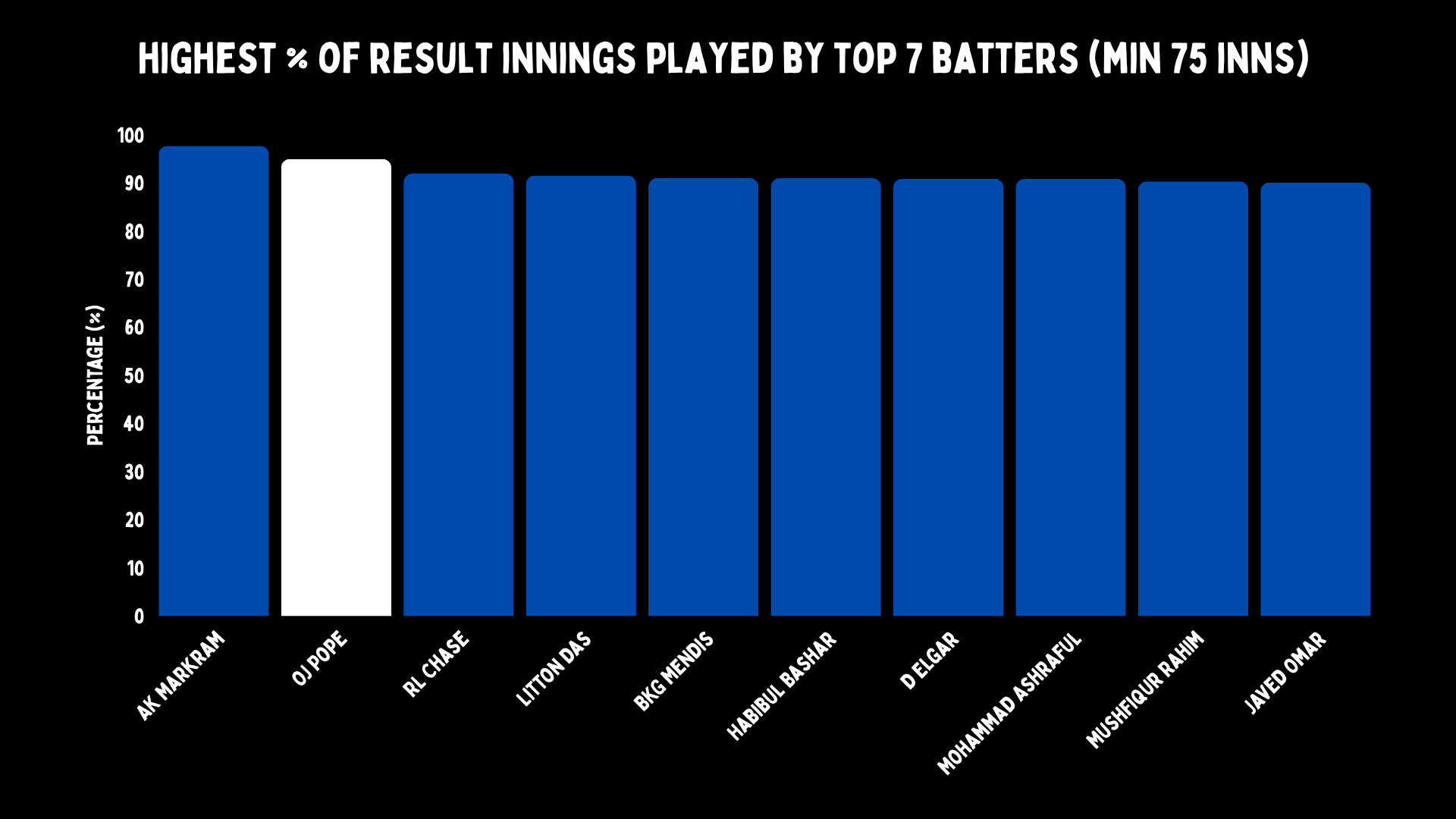 But there is one thing Pope has to get used to because of modern cricket and the way his team plays. Only Aiden Markram has ever played in fewer draws. Almost all of Pope’s matches are results. There is nowhere to hide, almost every knock is important, or needed, and on a pitch where bowlers get wickets.