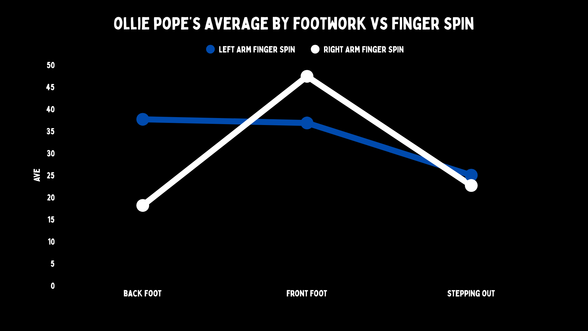 If you’ve ever seen Pope try to play R Ashwin, you would think you’re watching someone trying to solve a Sudoku while base jumping. He’s about as bad a backfoot player against offspin as any right-hander ever. He gets trapped in front as if every ball is an anxiety laden cluster bomb, whereas he has no issue against left-armers on the backfoot. But on the front, he starts to get shakier, but this is where he’s great against offies.