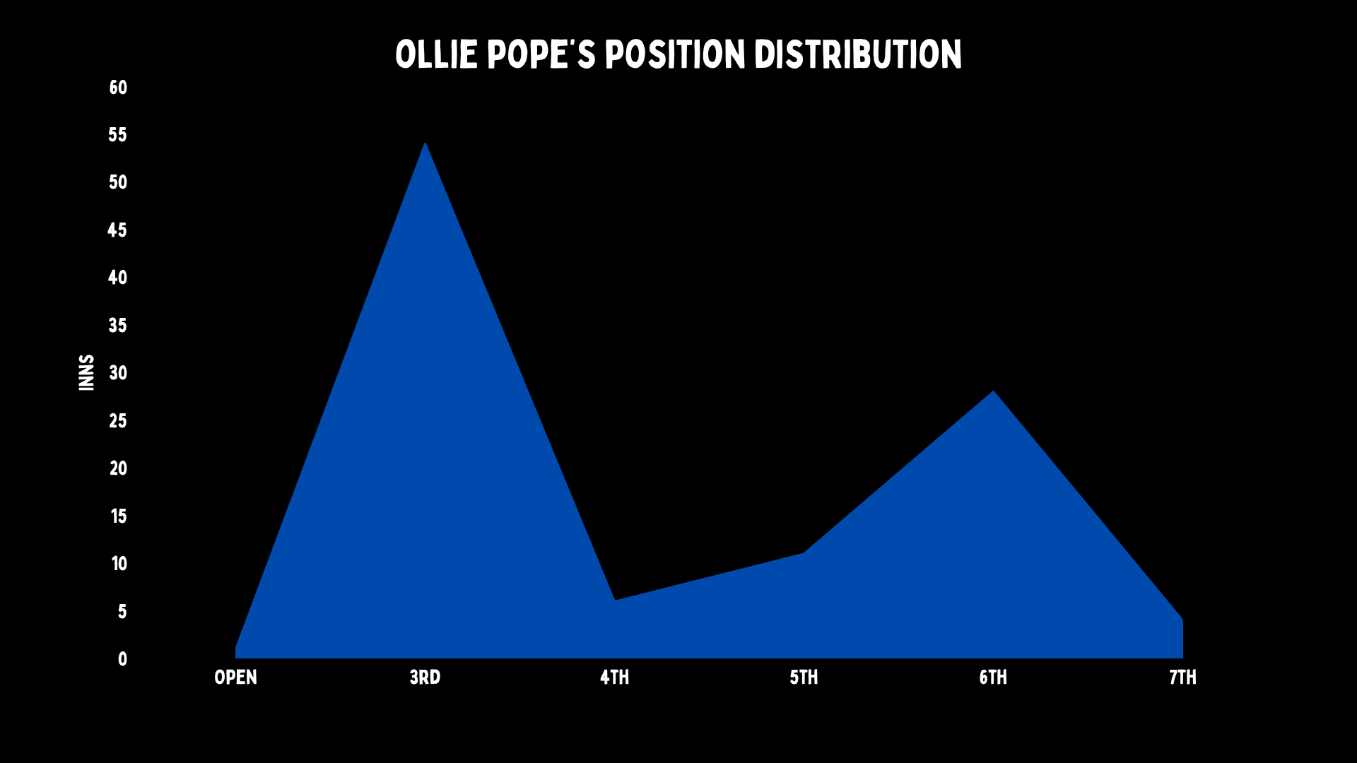 In England’s second innings of the match (so the third and fourth innings of the match), the median balls Pope will face is 19. That is what you’d expect from a number nine. And for you maths fans, it’s just above three overs.
