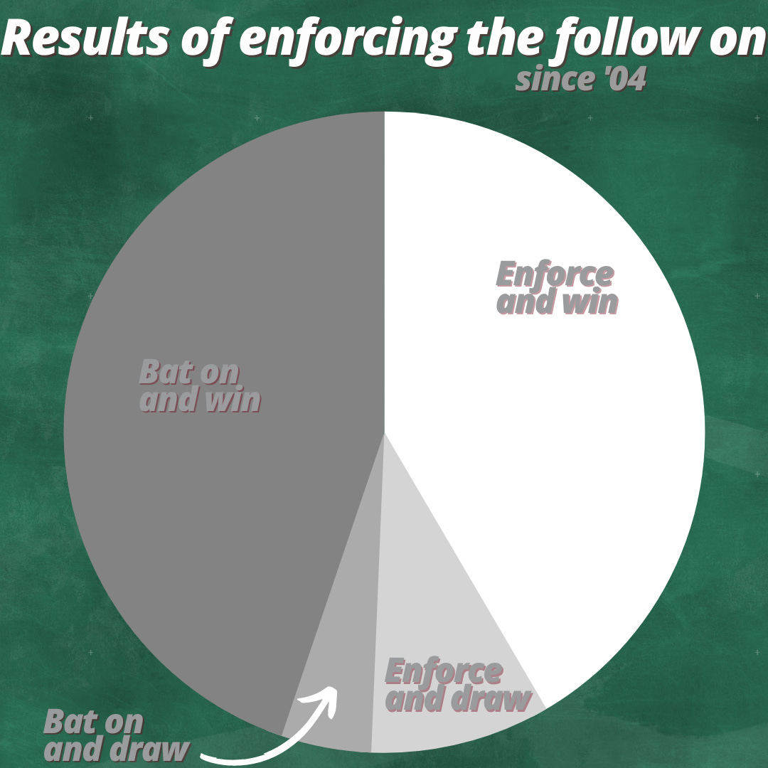 Like Brearley talks about the draws, we had over 50% of matches drawn in his writing years. Enforcing the follow on for that period makes a lot of sense to get results. Now, the draw rate is under 20%, and so while on occasion it matters, we enforce less than ever before and still have fewer draws.