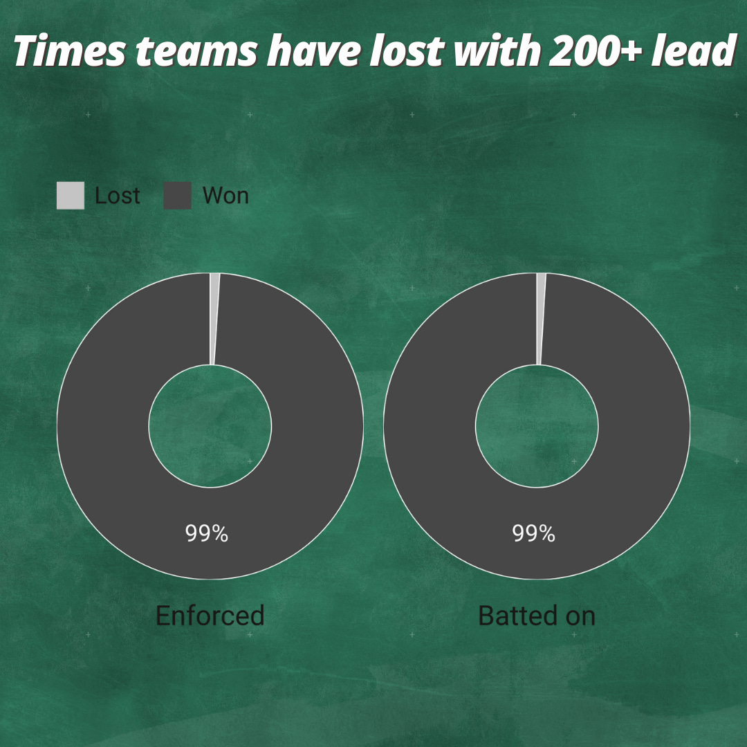 There have been 294 matches with a follow on enforced, and 107 without. And so either enforcing or not, means you lose about 1% of matches.