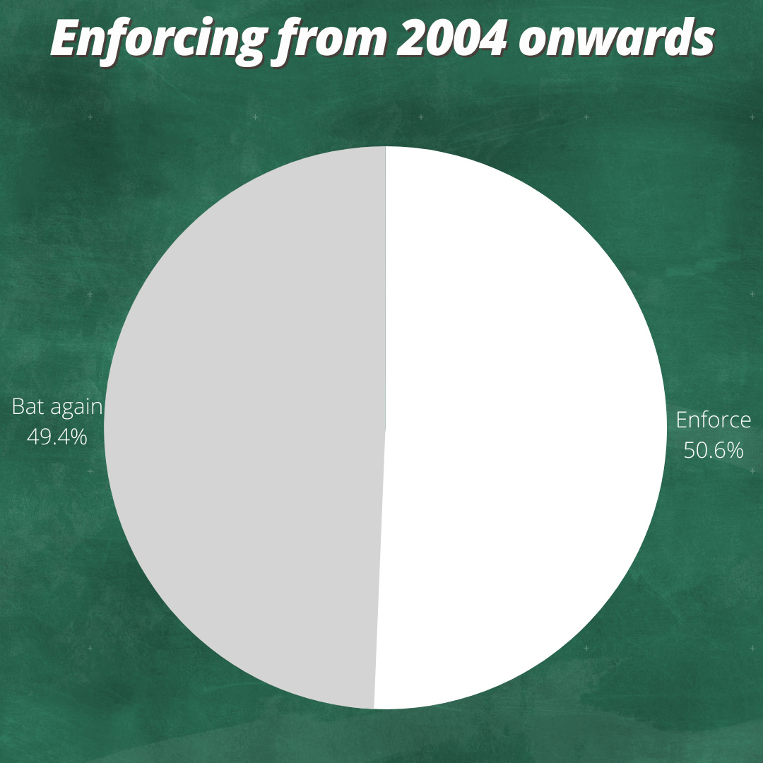 What really happened was that as the schedules changed, and also the pitches got better for batting, teams decided that it wasn't worth it. That doesn't show up really in the follow ons until 2004. From then until now, there have been two more occasions that a team has enforced than not. It's about as close to 50/50 as you can get.