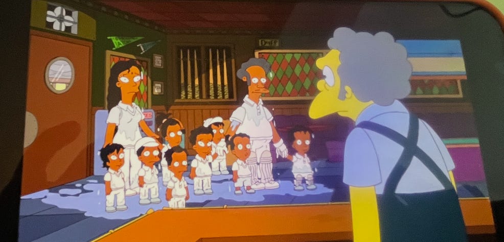 Before these three, America’s most famous subcontinental man was actually voiced by a white guy. For a TV show with a regular returning Indian character, taking 21 seasons to get a decent cricket gag in feels like an error.