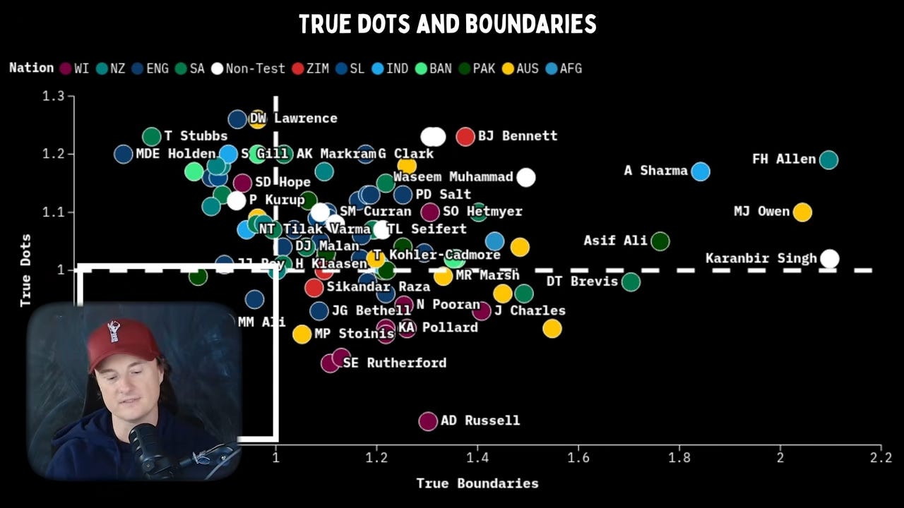 This graphic is rating players on true dots versus true boundaries, which are metrics that we have come up with so that we can better explain exactly how a player is scoring.
