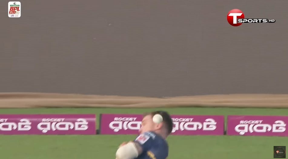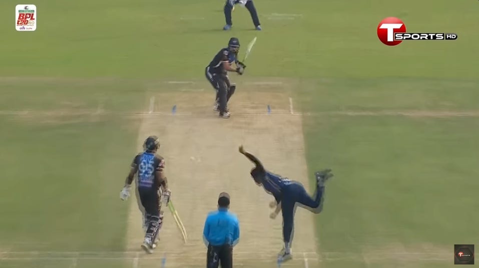 This was on January 7 in the Bangladesh Premier League. Dhaka Capital made 111 runs after being 62/2. Collapses happen, and it wasn’t the only dramatic loss of wickets in the BPL that day.
