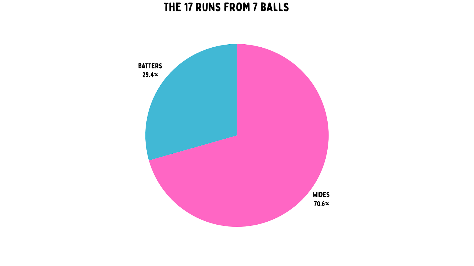 We checked how often 12 or more wides had been scored from a 17-run period in the first ten overs of T20 games. We found four before this in 8245 matches. We tried to put this on a graphic, but it looked stupid, so you may just have to use your head.