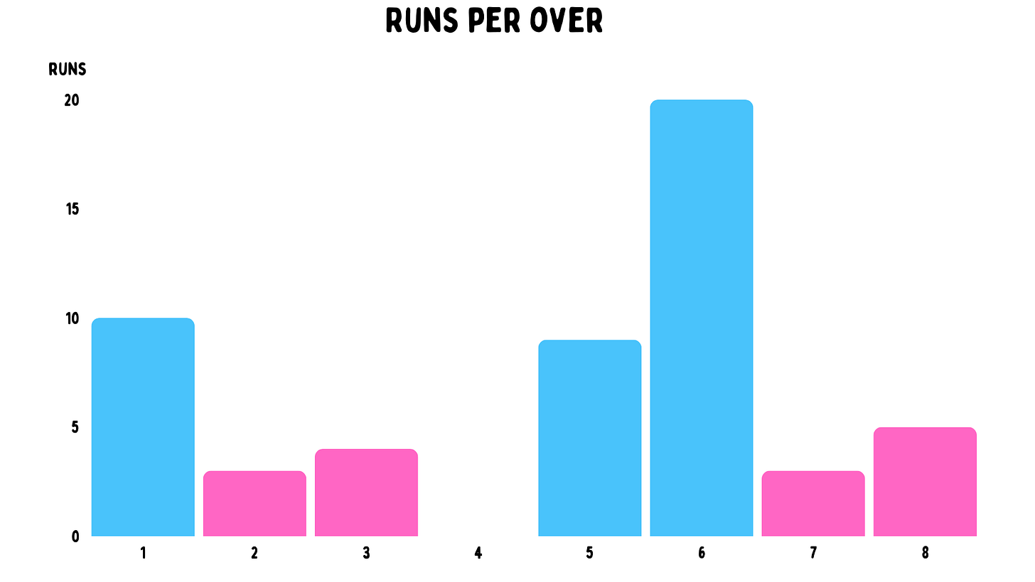 The third over had nine runs scored, so it was slightly behind what was needed, but even with fewer runs scored than the rate required to make it to 66, the run line did not come down. The following over made more sense with two sixes smashed in a row, and 14 runs from the over. For the first time, 66 runs seemed very possible.