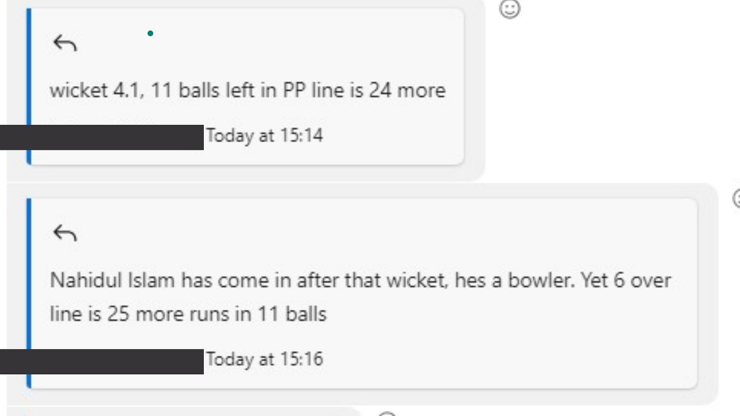The bowler for the sixth over was a part-timer in his fourth BPL match. Generally, the last over of the powerplay is usually delivered by a skilled frontliner, not a part-timer. The first ball was a half volley on leg stump that got the in-form batter on strike. The next ball was a wide full toss smashed to cover for a boundary.