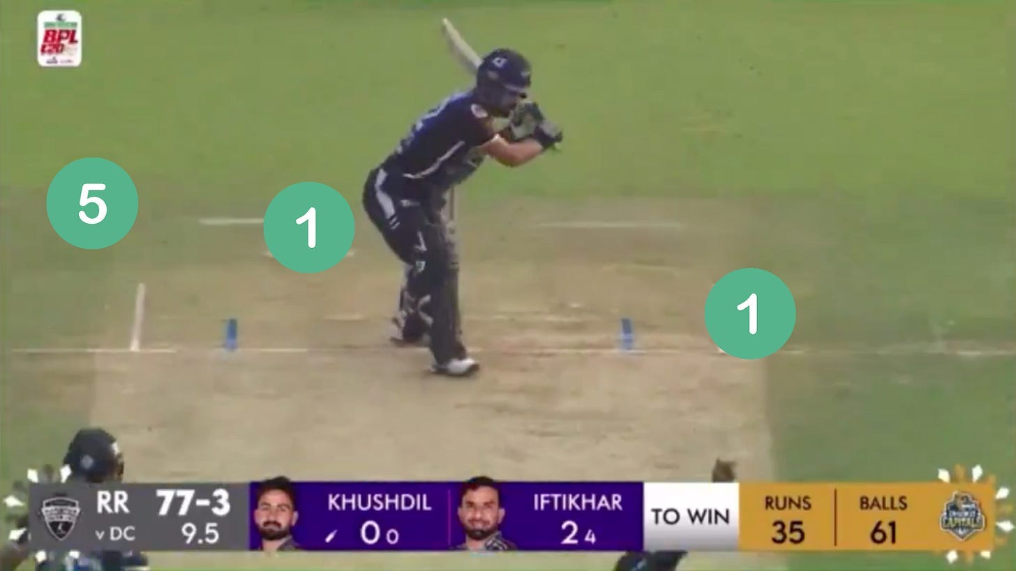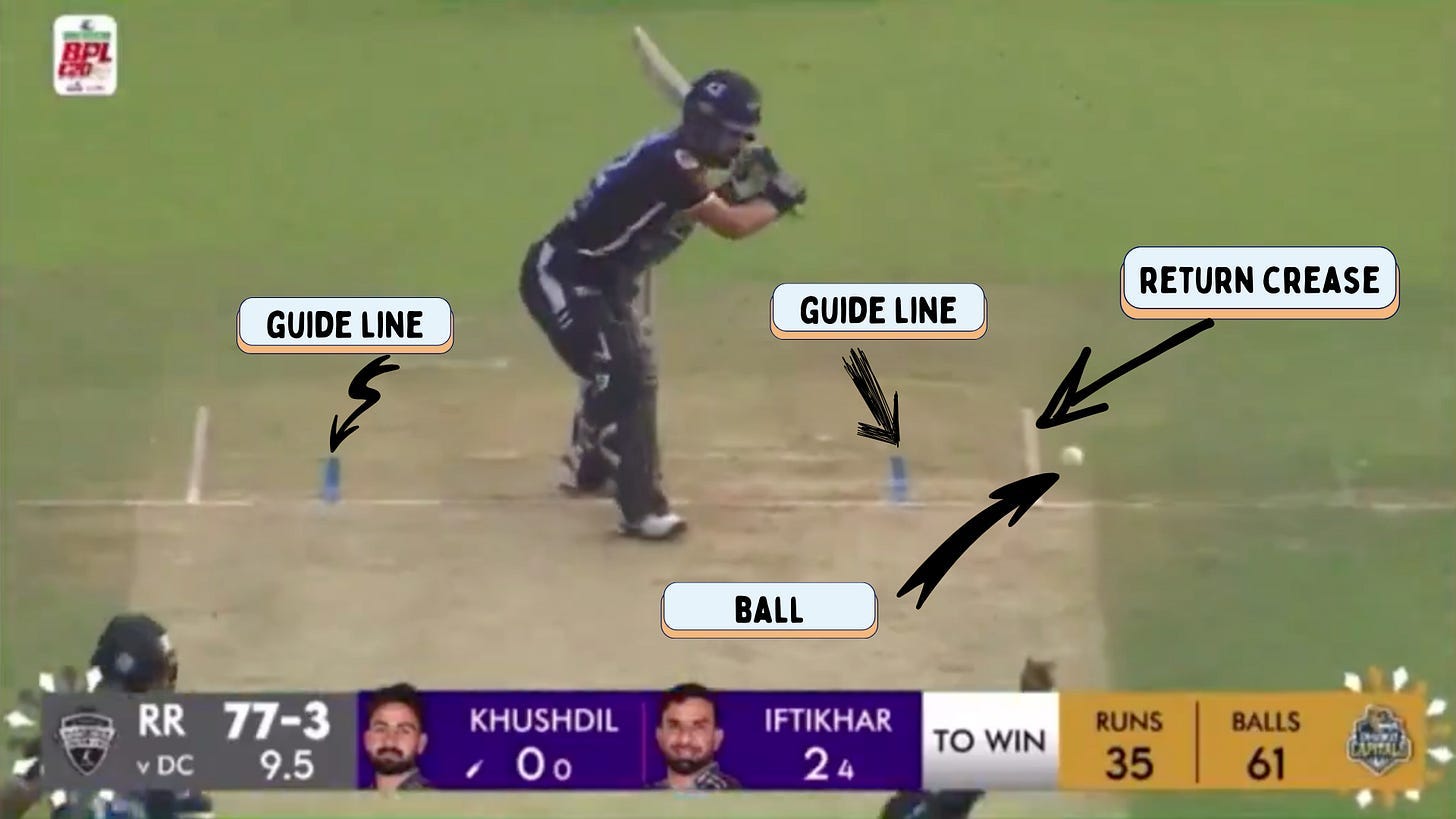 For his first delivery, the left-handed Khushdil did not have to do anything at all. The seam bowler, coming from right-arm around the wicket, pitched the delivery short and outside leg stump. The ball passed the batter not just down legside (which is obviously a wide), but outside the return crease.