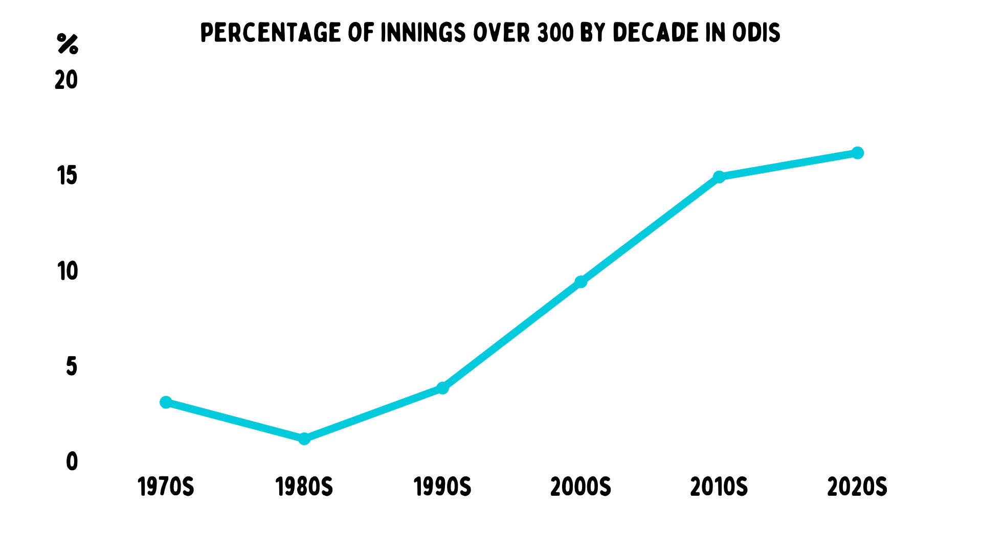 Since then, ODI cricket has changed massively. Teams are scoring over 300 runs like it’s a trip to Cleveland in the modern game. The evolution of the ODI game is down to multiple factors such as changes in the number of overs, field restriction rules, the colour and number of balls used in a match and larger bats, along with a higher emphasis on power-hitting – largely due to T20 cricket.