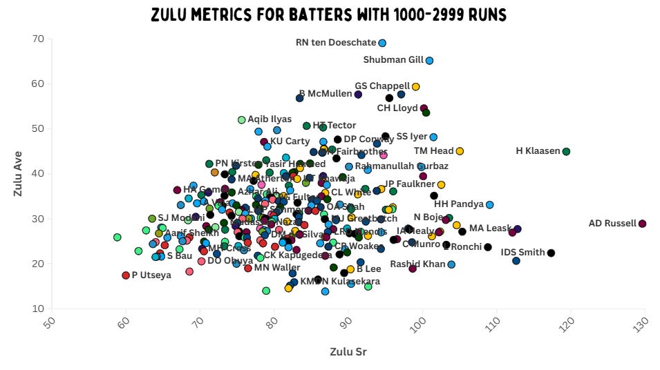 Now let’s actually display these ratios in a more familiar format – the Zulu-adjusted average and strike rate.