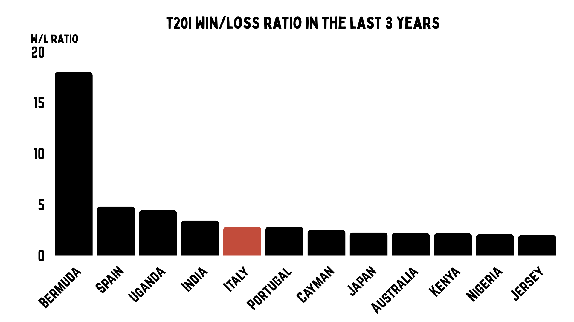 And you will not be shocked that this team is actually doing really well. How about this for fun: in the last three years, they have the same win-loss ratio as India. Against a slightly different quality of opposition. But if they keep playing like they are, it is possible that Italy qualify for the T20 World Cup.