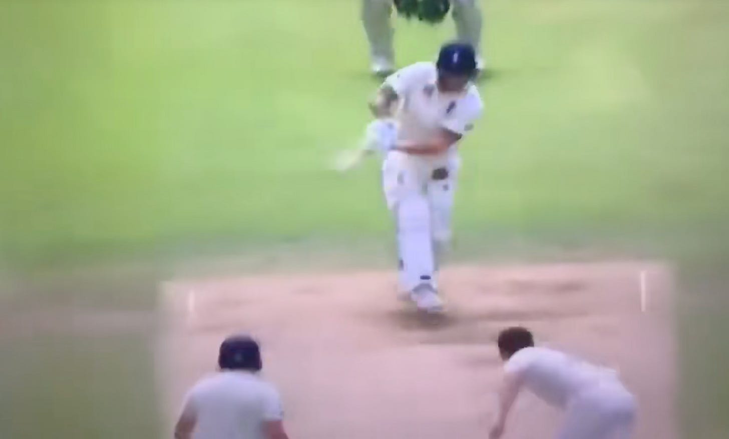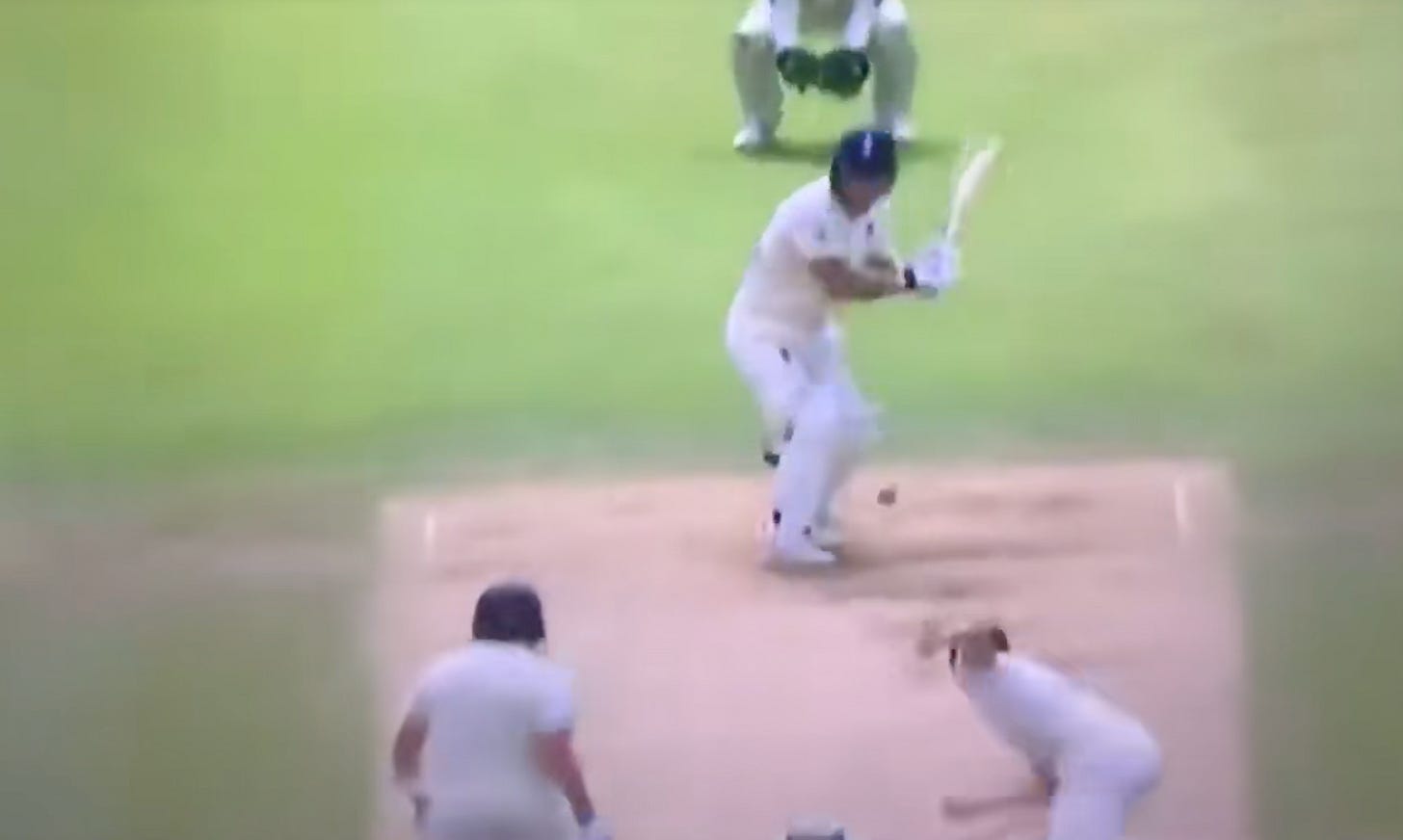 Stokes is always clearing out this side of his body, so when he misses the ball, his thigh pad is not in the way and there is only a groin protector between him and disaster.