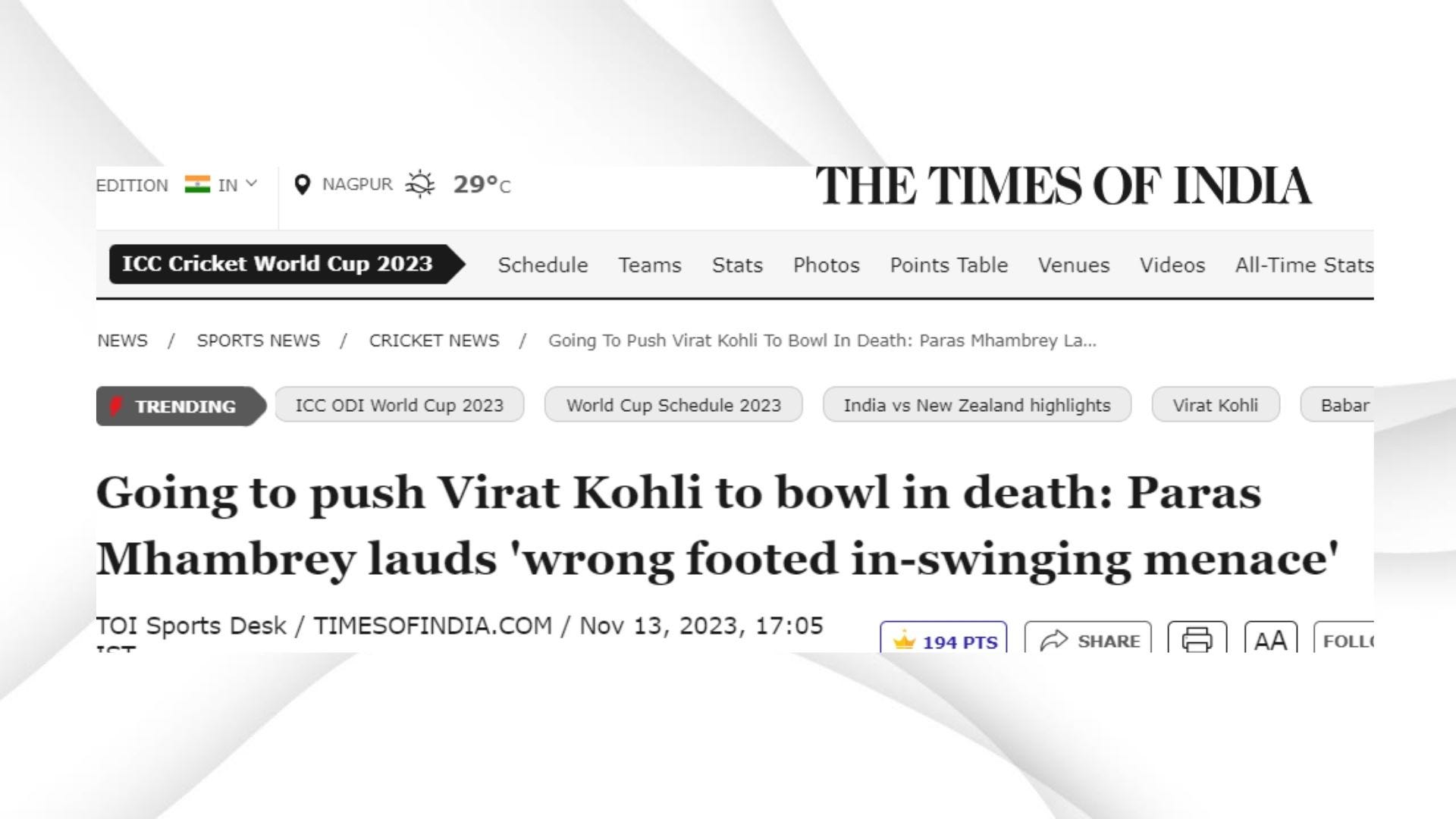 But look at his South Africa innings. With Shami at number 8, he decided to knock it around even in the death overs while SKY and Jadeja attacked. I think it was a team strategy, given South Africa’s chasing struggles. Kohli also mentioned the importance of batting deep at the halfway point of the match, which also makes sense considering the quality of the Indian bowling unit.