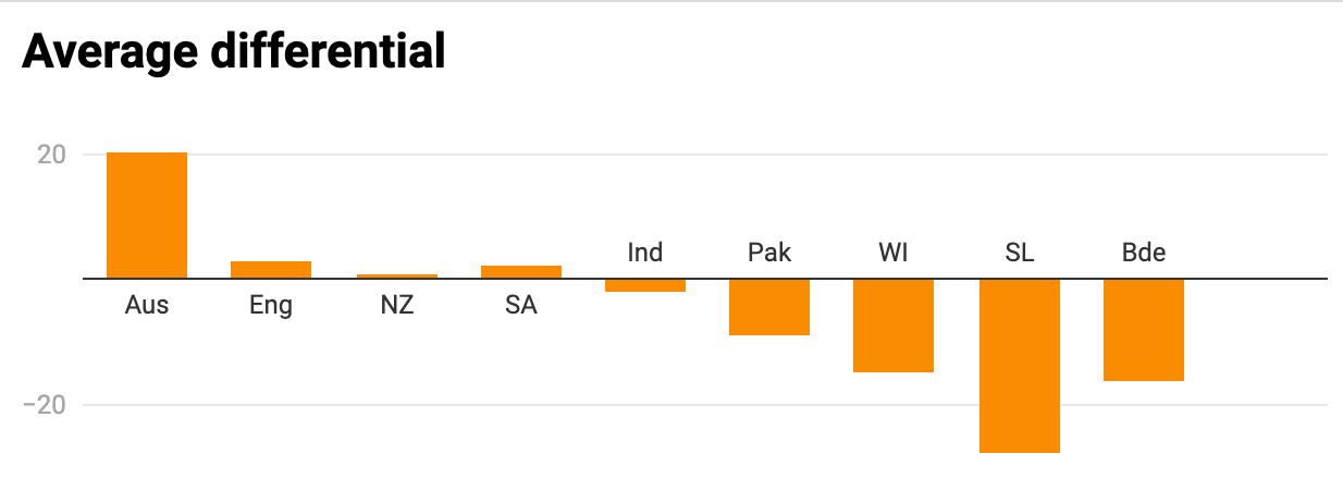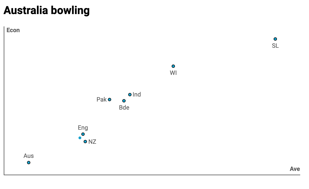 In the recent match against New Zealand, Australia made 325, New Zealand 93. To reach Australia's total, they would have had to lose 35 wickets at that rate. The kiwis have struggled of late, but they are ranked fifth, the difference between first and second right now is bad. The difference between first and fifth is epic. Oh, and they did this without their captain and best batter.