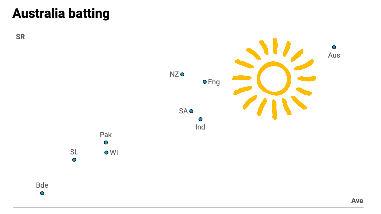 Australia are so far the best batting side that words won't work. Here they are first, and helpfully I've put daylight as second for you.